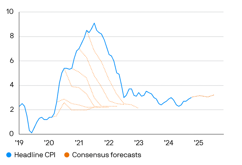Exhibit 6: Consensus expects US inflation to remain subdued, but didn’t forecast the last spike