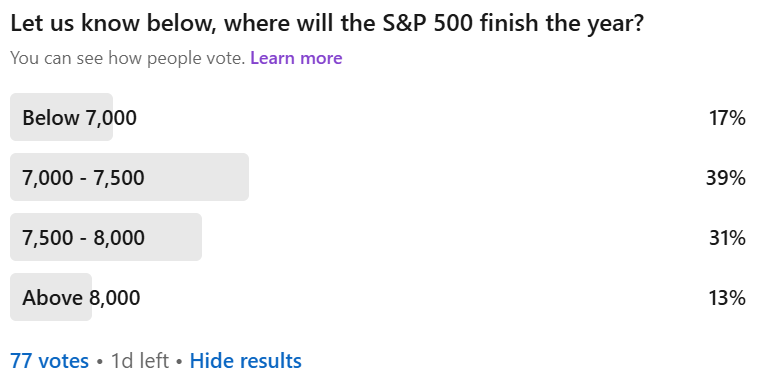 Off the back of these highs, we asked LinkedIn users where they think the S&P 500 will finish in 2026 — here’s what they said:
